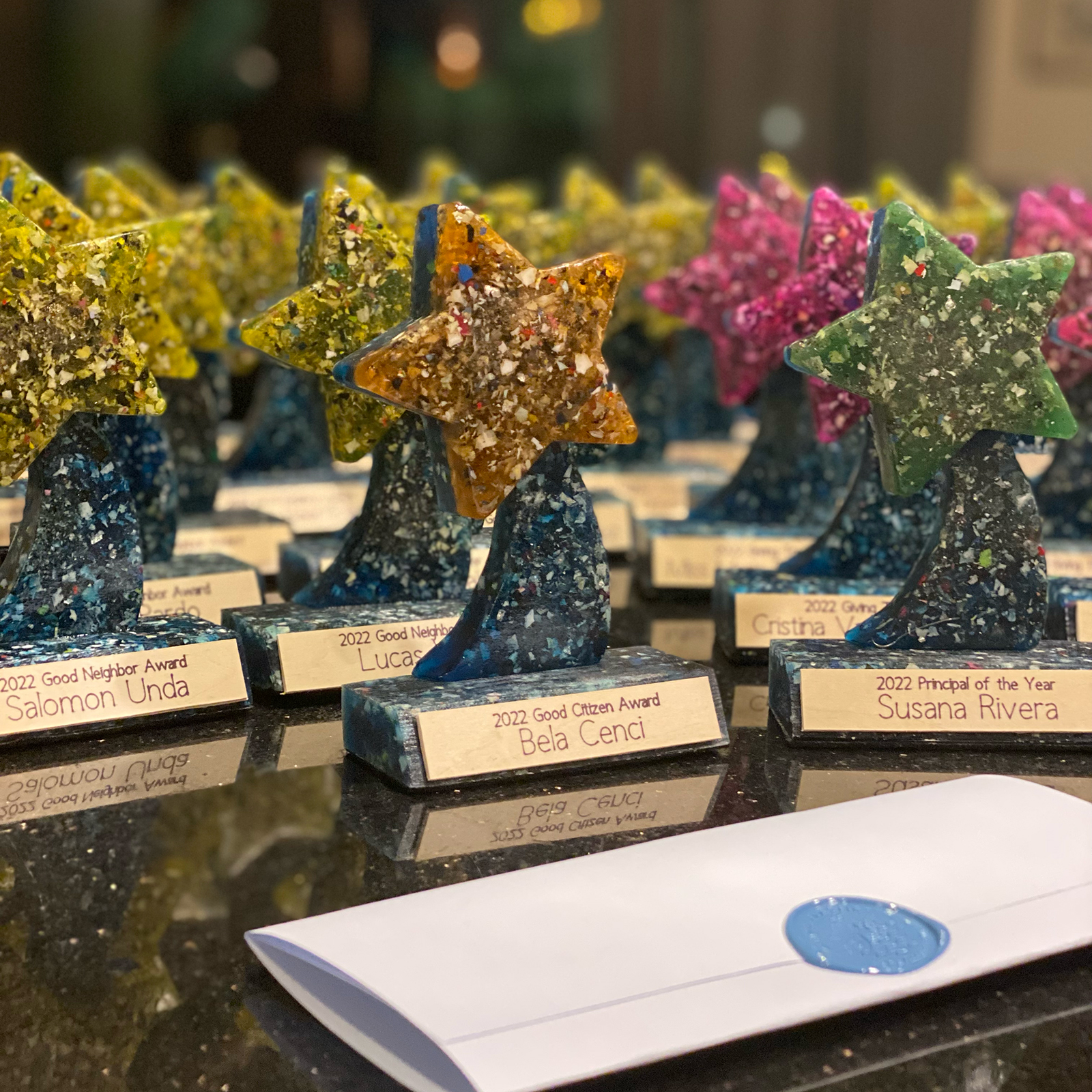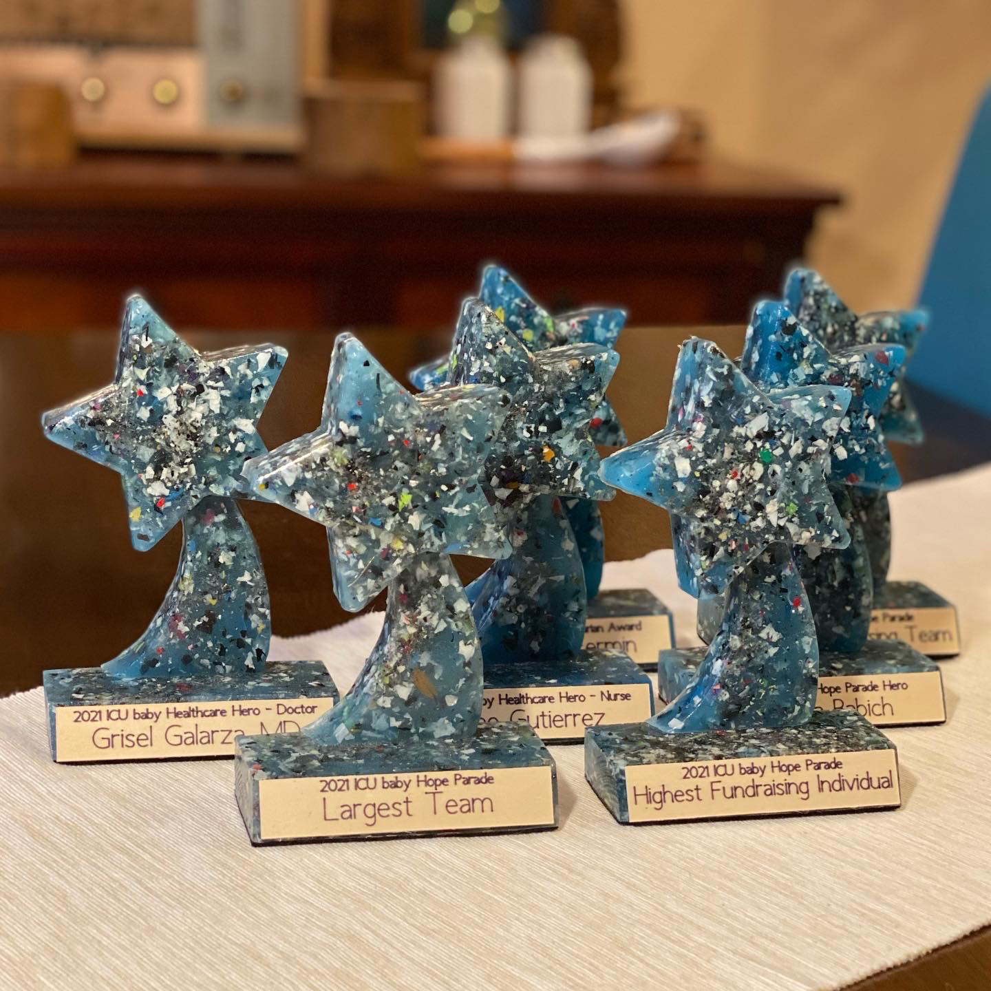 There were a few small projects that popped up through the year. We completed a series of Little Star trophies for our friends at ICU baby for their HOPE Parade. We were also approached to collaborate on a desk valet with a reclaimed clock, and we completed 26 trophies for The Good Neighbor Award on Key Biscayne. And to close out our third year journeying around the sun, we completed a few more Lazy Rivers to support the amazing Key Biscayne Community Foundation’s 2022 Aqua Party.